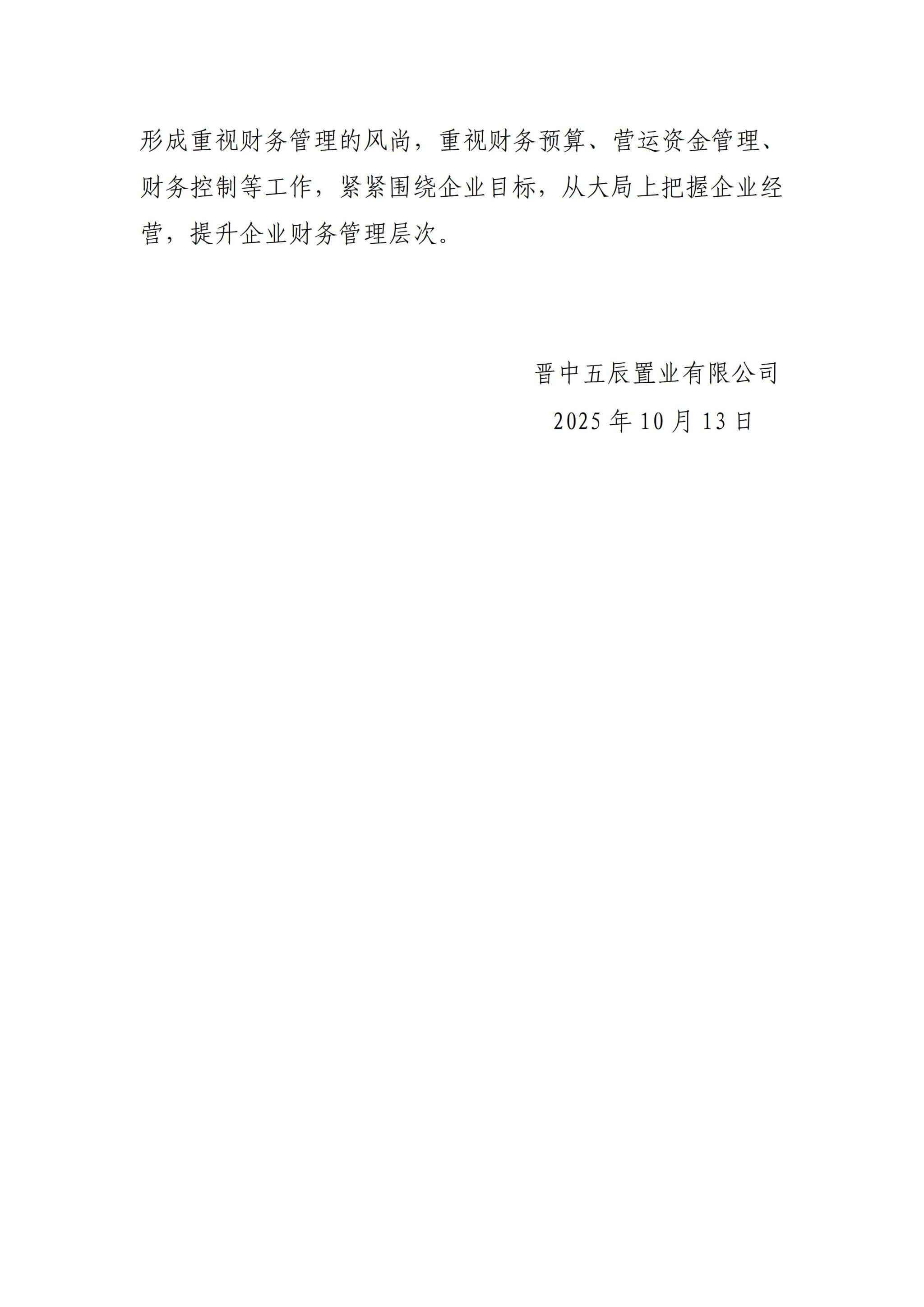 晋中五辰置业有限公司2025年三季度企业重大信息公开