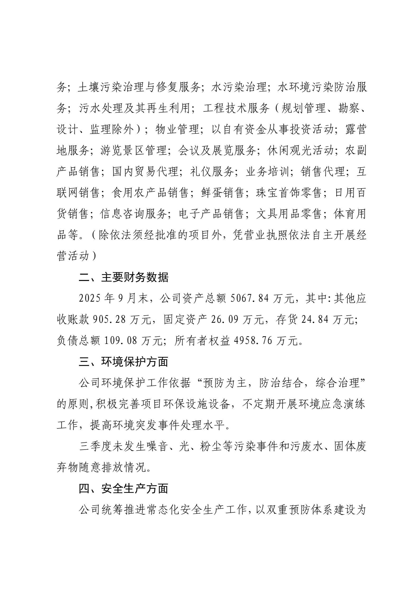 山西美丽乡村建设有限公司2025年三季度企业重大信息公开